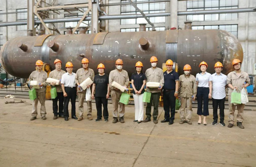 7月23日下午,臨淄區總工會副主席于宗偉、區總工會黨組成員賈鳳玲,區總工會職工服務中心主任孫能富一行來到齊魯石化機械制造有限公司看望慰問崗位的一線員工,并贈送了防暑降溫品。